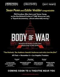 Body of War is Tomas’ coming home story as he evolves into a new person, coming to terms with his disability and finding his own unique and passionate voice against the war. The film is produced and directed by Phil Donahue and Ellen Spiro, and features two original songs by Eddie Vedder. Body of War is a naked and honest portrayal of what it’s like inside the body, heart and soul of this extraordinary and heroic young man.