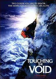 In Touching the Void, filmmaker Kevin Macdonald (One Day in September) tells their story, based on Simpson’s book, using contemporary interviews with the two men, and a reenactment of their climb and descent, featuring Brendan Mackey as Simpson and Nicholas Aaron as Yates. Touching the Void was shown at the 2003 Toronto Film Festival…